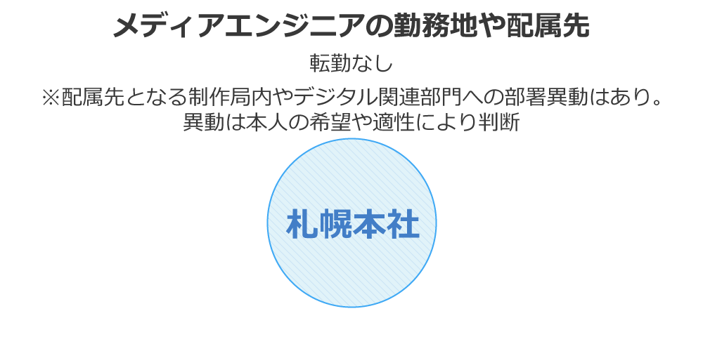 北海道新聞社では職種別採用を行っているため、基本的には他職種への異動(例:記者職からビジネス職など)はできません。ただしビジネス職は、局間異動(例:営業局から販売局、事業局から営業局など)が可能です。1つの職種で複数の局を経験できる幅広さが特徴です。